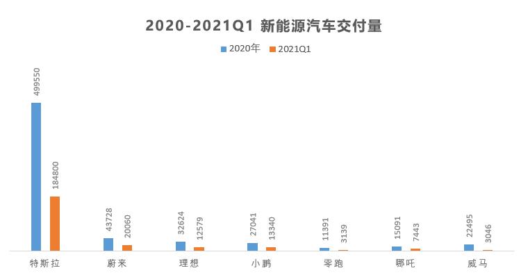 事實(shí)上,新能源汽車領(lǐng)域面臨的不僅是資金投入大的問(wèn)題,更是資產(chǎn)周期長(zhǎng),技術(shù)難點(diǎn)多等各種挑戰(zhàn)。根據(jù)各企業(yè)發(fā)布數(shù)據(jù)顯示,2020年特斯拉汽車交付量多達(dá)50萬(wàn)輛,2021年第一季度交付量約18.5萬(wàn)輛,而同時(shí)期的蔚來(lái)、理想和小鵬較之相差甚遠(yuǎn)。