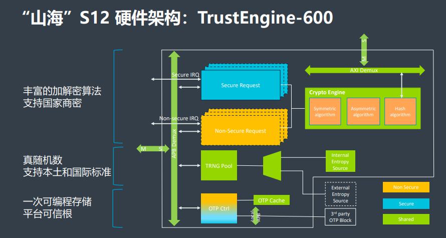 第一,“山?!盨12提供基于Turnkey的安全解決方案,主要面向AIoT,集端、管、云于一體,以硬件加解密引擎為基礎并具備豐富的安全固件和SaaS軟件能力,加速產品集成,節(jié)約時間成本,幫助客戶產品迅速進入市場。