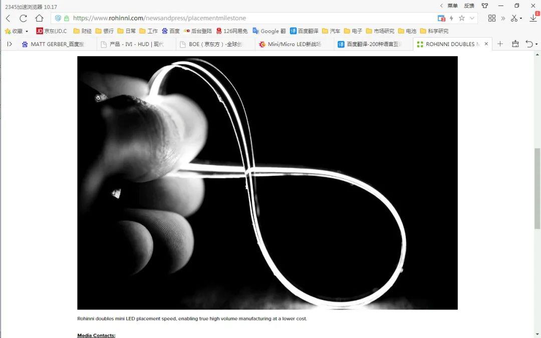 最近,著名汽車零部件制造商麥格納(Magna)與美國初創(chuàng)公司羅辛尼(Rohinni)合資成立了一家新公司Magna Rohinni Automotive(麥格納羅辛尼汽車),它應(yīng)該還屬于Tier 1,致力于將光影付諸汽車出行。該公司業(yè)務(wù)開發(fā)經(jīng)理Brian Pospy說:“當(dāng)我把能夠彎曲的mini和microLED發(fā)出的光線展示給小學(xué)五年級學(xué)生時(shí),簡直讓他們大吃一驚。”他表示,麥格納一直致力于為汽車制造商和終端消費(fèi)者帶來最新的技術(shù),以提高安全性、性能和駕駛體驗(yàn),為未來移動出行鋪平道路。