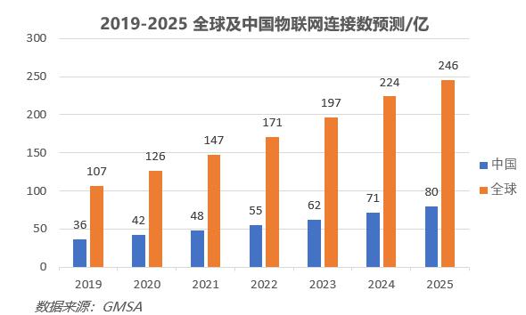 圖:2019-2025全球及中國物聯(lián)網(wǎng)設(shè)備連接數(shù)量預(yù)測
