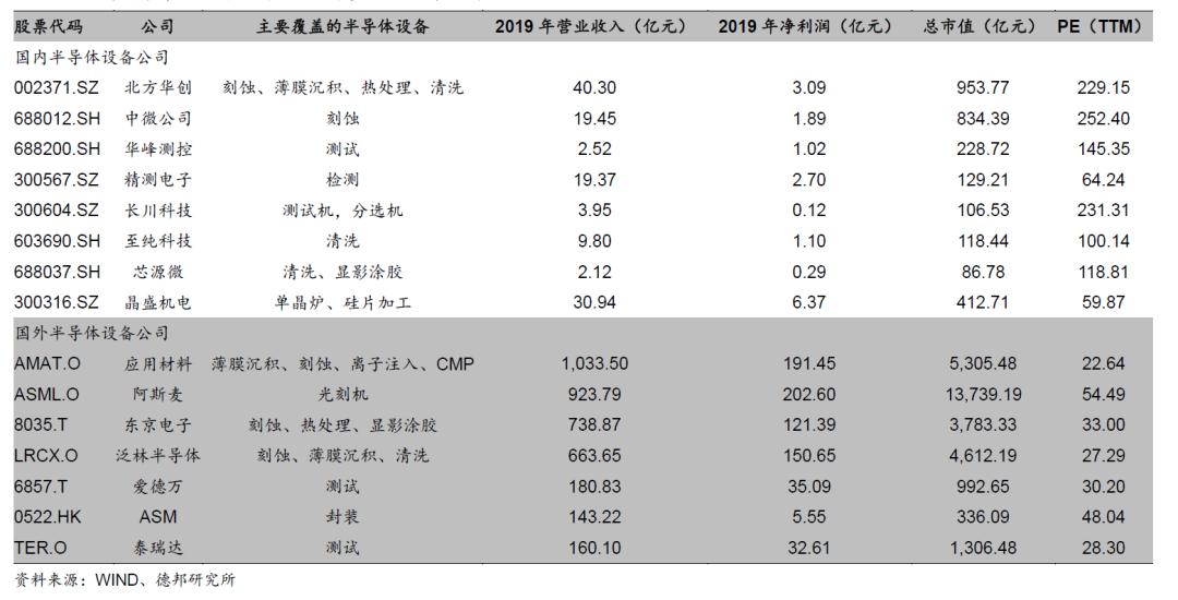 國內(nèi)外主要半導(dǎo)體設(shè)備公司對比(截至2021年1月6日)