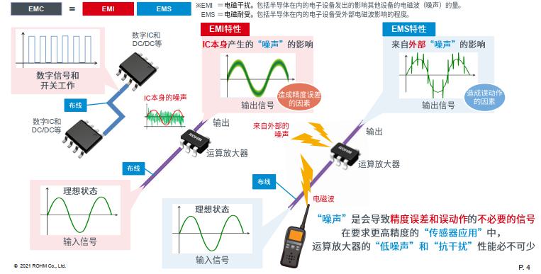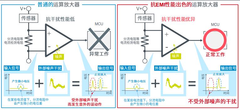 據(jù)羅姆半導體(上海)有限公司技術(shù)中心主管朱莎勤(Susan Zhu)介紹,羅姆根據(jù)EMC特性開發(fā)出超低噪聲運算放大器和抗EMI性能出色的運算放大器。