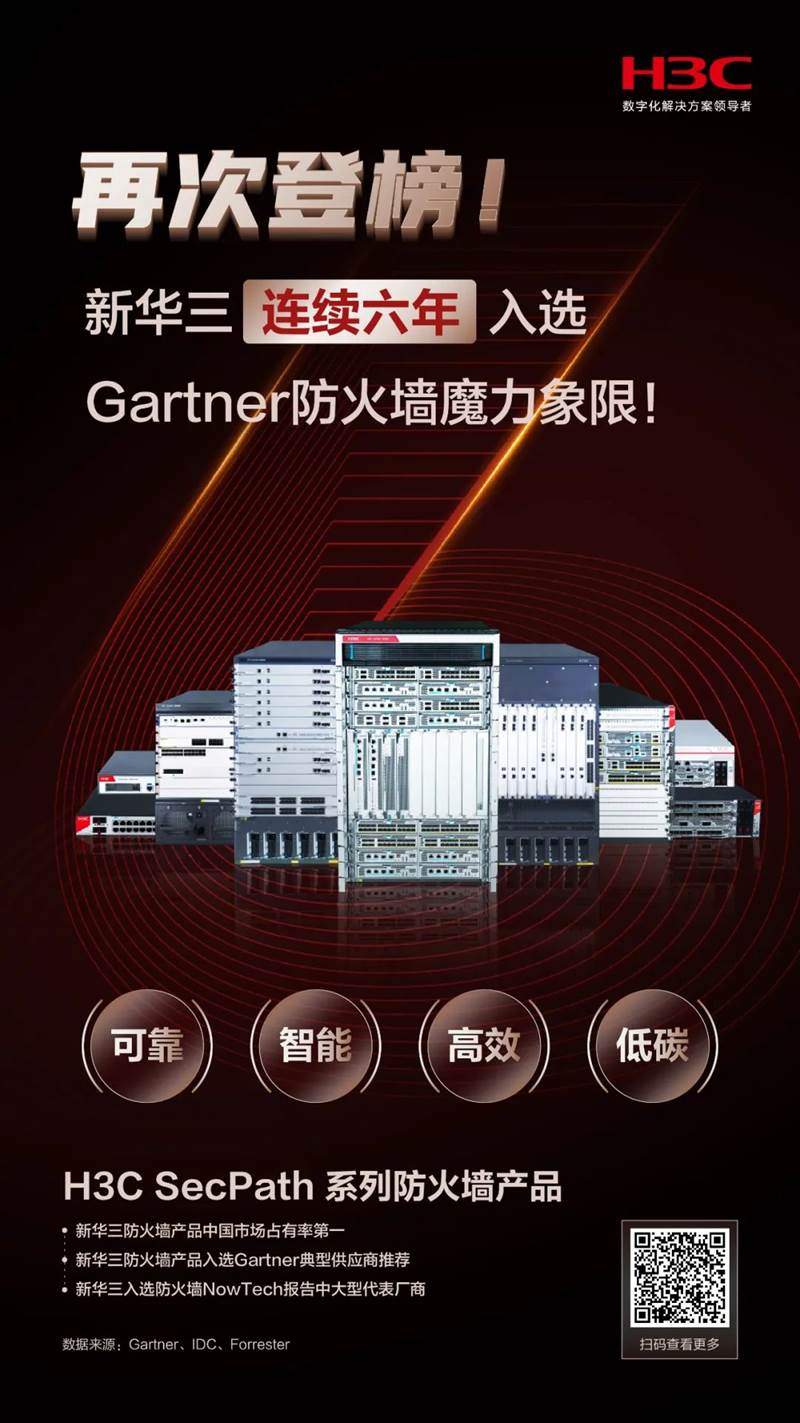 近日,Gartner發(fā)布《2022年網(wǎng)絡(luò)防火墻魔力象限報告》,紫光股份旗下新華三集團(tuán)連續(xù)六年入選該報告,登榜2022年網(wǎng)絡(luò)防火墻魔力象限“特定領(lǐng)域者”象限。
