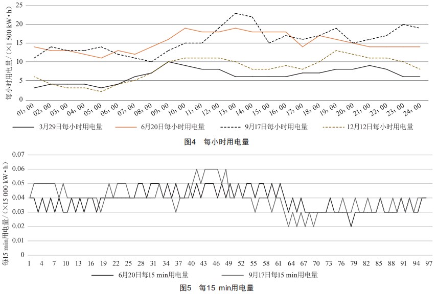 研究6月20日、9月17日用電情況,每15min讀取一次數(shù)據(jù),如圖5所示(倍率15000)。
