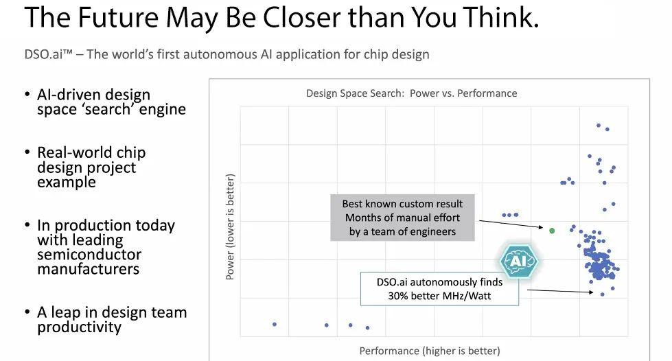 人工智能在芯片設(shè)計(jì)工具、方法論和流程上應(yīng)用效果如何,是EDA工具能否從“Photoshop”轉(zhuǎn)向“美圖秀秀”的關(guān)鍵。在這個(gè)領(lǐng)域,新思已經(jīng)結(jié)出碩果。2020年初,新思推出DSO.ai技術(shù),通過(guò)在芯片設(shè)計(jì)工作中引入人工智能,讓EDA工具更智能化,更好用,并進(jìn)一步提高了芯片設(shè)計(jì)的抽象層次,大幅降低芯片設(shè)計(jì)的難度和門檻,讓開發(fā)者將更多精力投放在高層次模塊的創(chuàng)新上。新思還利用人工智能技術(shù)在芯片設(shè)計(jì)的巨大求解空間里搜索優(yōu)化目標(biāo),自主執(zhí)行次要決策,幫助芯片設(shè)計(jì)團(tuán)隊(duì)以專家級(jí)水平進(jìn)行操作,從而大幅提高整體生產(chǎn)力。