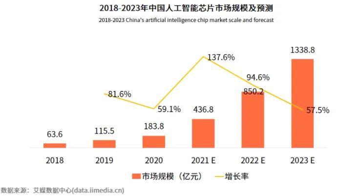 得益于物聯(lián)網(wǎng)、大數(shù)據(jù)、機器視覺突飛猛進(jìn)的發(fā)展,人工智能應(yīng)用需求逐漸提升,拉動了AI芯片的應(yīng)用需求。產(chǎn)業(yè)里廣為流傳的一句話:無芯片,不AI。根據(jù)iiMedia Research(艾媒咨詢)數(shù)據(jù)顯示,2020年中國人工智能芯片市場規(guī)模達(dá)183.8億元,預(yù)計2023年將突破千億級別。