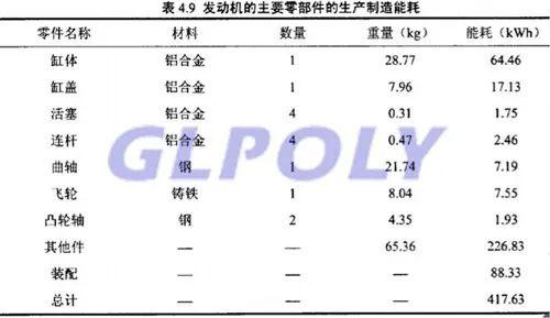 發(fā)動(dòng)機(jī)主要零部件生產(chǎn)制造能耗