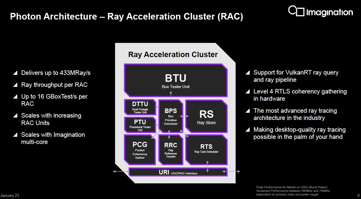僅僅在軟件上進(jìn)行優(yōu)化是不夠的,移動(dòng)GPU中需要集成專門的光追處理硬件單元,實(shí)現(xiàn)光追計(jì)算的加速,實(shí)現(xiàn)整體更低的能效。