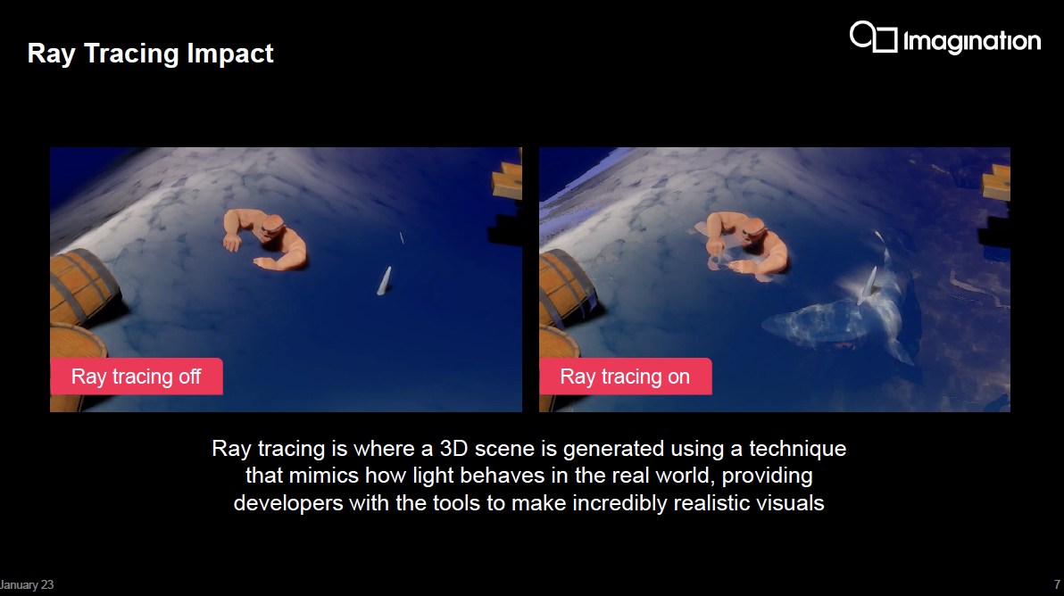 其實(shí)CXT中搭載的RAC已經(jīng)實(shí)現(xiàn)了移動(dòng)硬件光追的技術(shù)基礎(chǔ),但DXT的最大意義則在于通過(guò)可拓展的RAC,讓移動(dòng)光追整個(gè)生態(tài)的快速發(fā)展提供了進(jìn)階的路線。Imagination公司技術(shù)產(chǎn)品管理高級(jí)總監(jiān)Stephen Barton表示,移動(dòng)光追的實(shí)現(xiàn),并不意味著從今天開(kāi)始就要把所有內(nèi)容完全用光追技術(shù)打造的路線來(lái)推,而是推薦大家在現(xiàn)有的游戲內(nèi)容中逐步地、一點(diǎn)一點(diǎn)加入光追的元素,包括光追打造的光影效果。一步一步隨著市場(chǎng)上設(shè)備越來(lái)越多地使用這些硬件級(jí)別支持光追的設(shè)備,那個(gè)時(shí)候再把光追內(nèi)容進(jìn)一步增加,這將是一個(gè)漸進(jìn)的過(guò)程?!?a href="/tags/Imagination" target="_blank">Imagination的光追加速集群(RAC)是獨(dú)立于GPU本身的光柵化性能以外的存在,如果是有余力的游戲開(kāi)發(fā)者,可以想一想怎么將其利用起來(lái),思考要不要在其游戲內(nèi)容中加入更多的光影效果?!?
