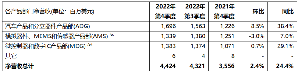 (a) 自 2022 年 7 月 1 日起,低功率射頻業(yè)務部門從 AMS(模擬器件子業(yè)務部)轉入 MDG(微控制器和存儲器子業(yè)務部)。前期數(shù)字做相應的調整。