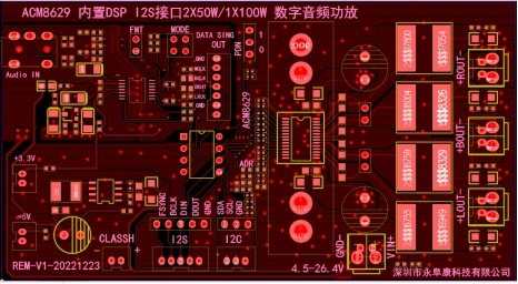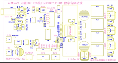 ACM8629 單聲道100W/立體聲50W內(nèi)置DSP音頻算法的I2S數(shù)字輸入D類功放IC解決方案