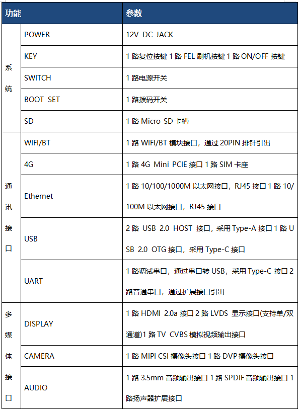 表開發(fā)板外設(shè)接口資源主要參數(shù)