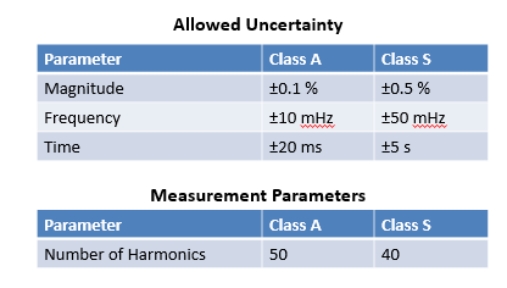 電能質(zhì)量IEC61000-4-30標(biāo)準(zhǔn)分為A級或者S級精度。A類是電能質(zhì)量的最高級別,每一項(xiàng)測試項(xiàng)目都有最高的準(zhǔn)確度要求。S級僅次于A級,標(biāo)準(zhǔn)要求的大部分項(xiàng)目與A級相同或精度水平下降一個(gè)數(shù)量級。