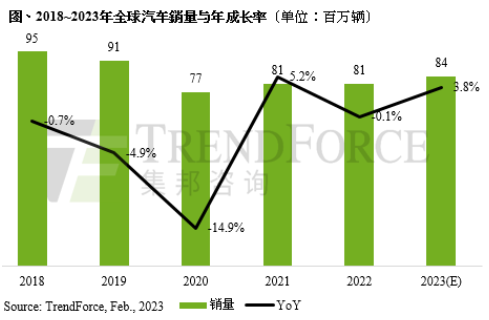 TrendForce集邦咨詢:2023年全球汽車(chē)銷(xiāo)量恢復(fù)成長(zhǎng),預(yù)估約8,410萬(wàn)輛,年增3.8%