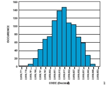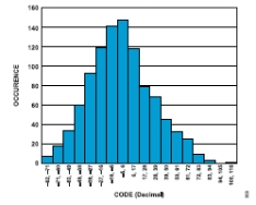 圖6顯示了中間電平輸入(5V)時(shí)的噪聲特性,圖7顯示了滿量程輸入(10V)時(shí)的噪聲特性。