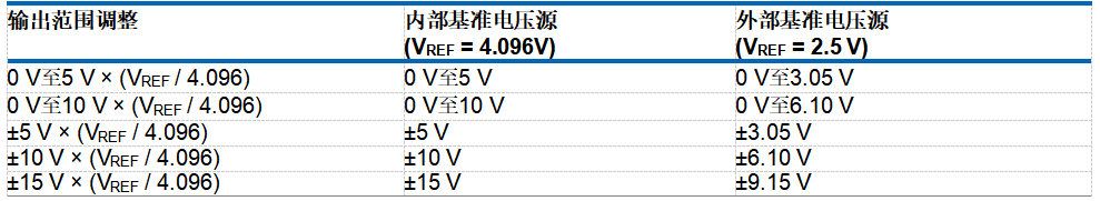 LT8582為L(zhǎng)TC2688提供±18V電源軌,使DAC能夠充分利用其高達(dá)±15V的模擬輸出范圍。每個(gè)通道的輸出范圍可獨(dú)立編程為表2中列出的五個(gè)范圍?;鶞?zhǔn)電壓可通過(guò)軟件編程,可使用內(nèi)部4.096V,或?qū)DR4525 2.5V基準(zhǔn)電壓源用于ADC。每個(gè)通道還支持5%的超量程。