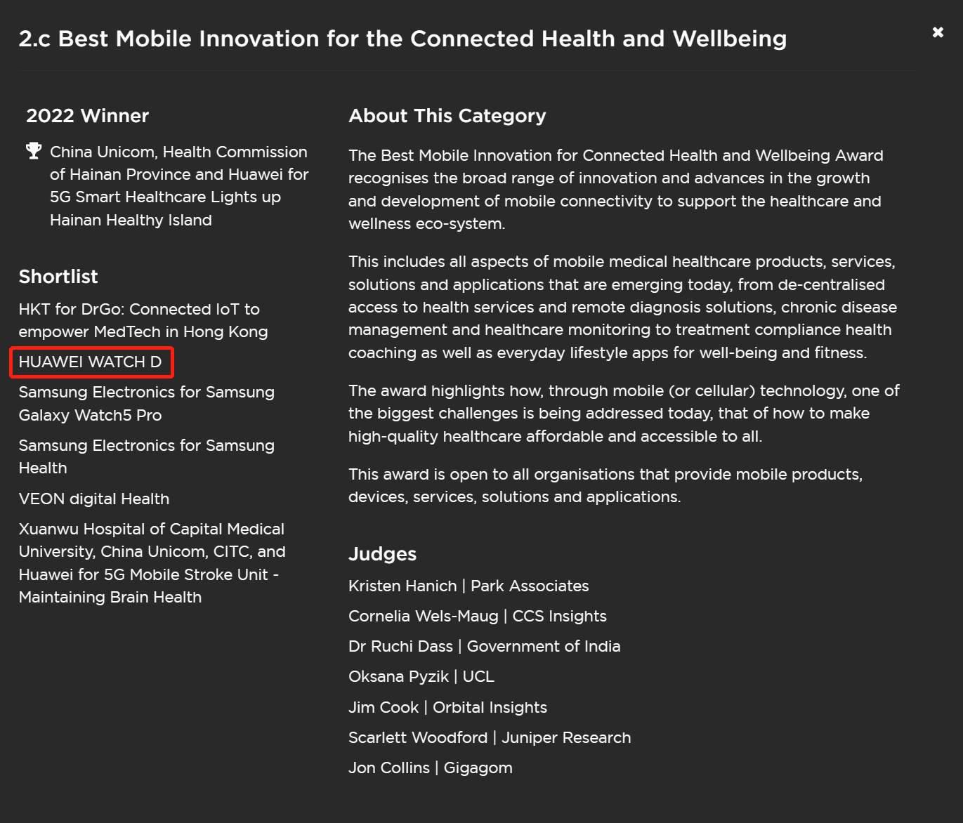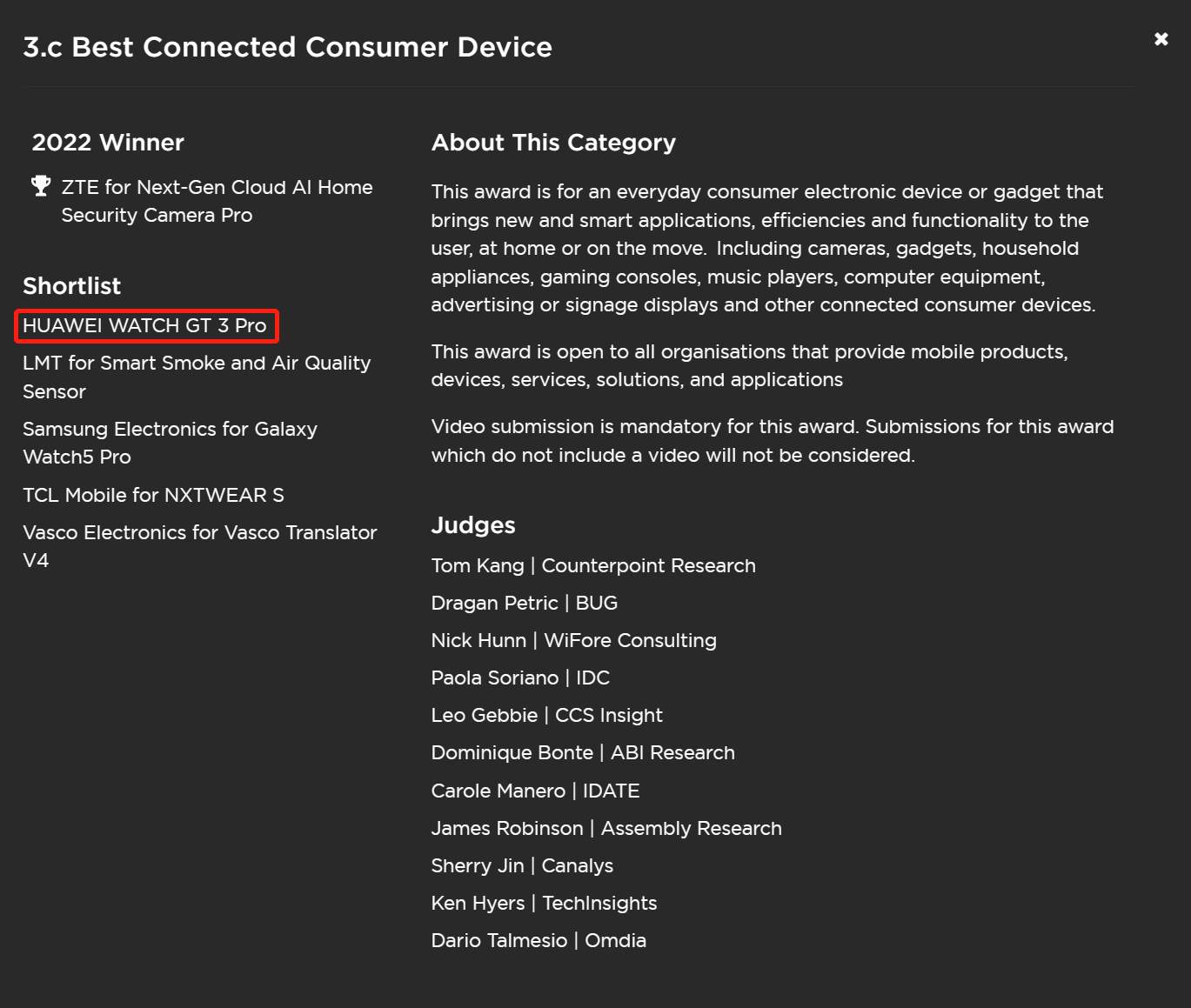MWC 2023全球移動(dòng)大獎(jiǎng)入圍名單揭曉:華為多款穿戴設(shè)備入選
