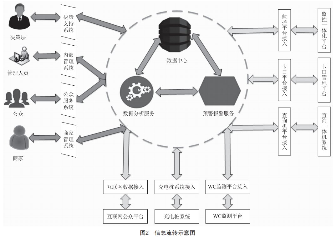 信息流轉(zhuǎn)(圖2)是陽江服務(wù)區(qū)建設(shè)過程中重要的一部分,現(xiàn)對業(yè)務(wù)流程與管理需求做如下總結(jié):