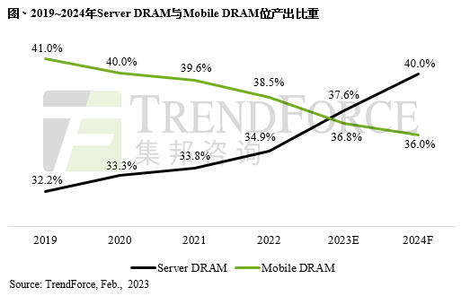 TrendForce集邦咨詢:2023年Server DRAM位元產(chǎn)出比重達37.6%,將正式超越Mobile DRAM