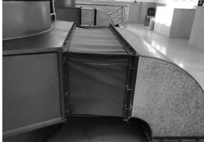 這個降低噪聲的方法簡單,可操作性強,有理論支持,便于在以后排澇泵站建設(shè)中推廣應(yīng)用,服務(wù)于社會?;葜菔谢莩菂^(qū)2021年改建的排沙河排澇泵站,采用四臺立式機組,電機單機容量1000kw,電機與風(fēng)管之間就應(yīng)用了柔性連接技術(shù),如圖2所示。