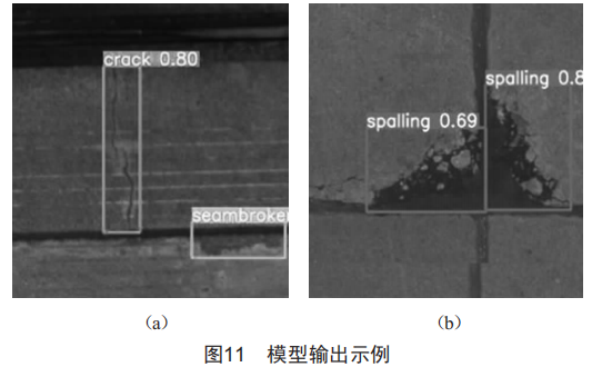 因此,最終選擇進行了多尺度訓(xùn)練的模型,該模型在測試集上的精確率(PreciSion)為0.809,召回率(Recall)為0.609,mAP為0.755,平均推理耗時僅為22ms。模型輸出效果如圖11所示。
