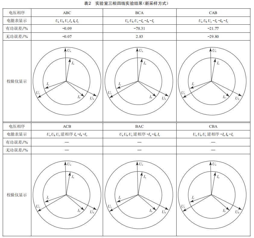經(jīng)實驗,三相四線電能表(規(guī)格為3×5727/100V、3×023(122)A、有功準(zhǔn)確度等級025s級、無功準(zhǔn)確度等級220級)在標(biāo)定電壓、標(biāo)定電流、功率因數(shù)為0295L條件下,不同電壓相序接線中所測有功、無功誤差情況如表2所示。