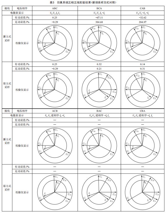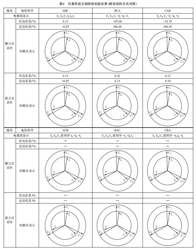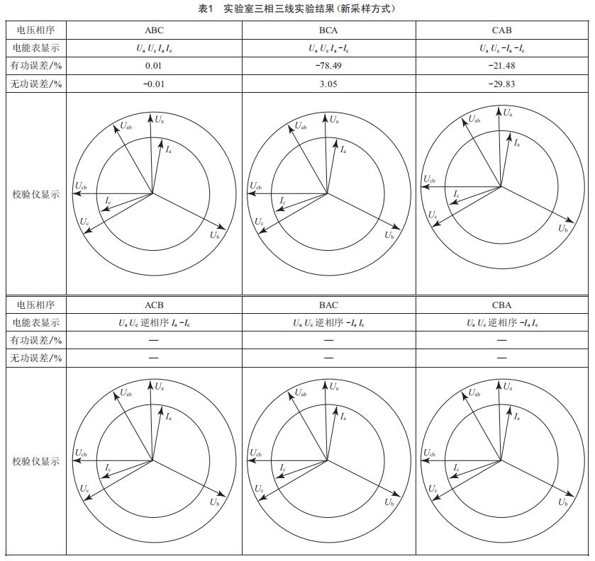 為保證本措施在安全的前提下真實達(dá)到現(xiàn)場校驗的目的,不遺漏錯誤接線的情況,分別在電能表實驗室檢定臺體、電能表仿真接線系統(tǒng)中以誤差合格的三相多功能電能表(三相三線及三相四線)作為測試對象,通過改變接線盒與電能表之間的三相電壓接線,校驗得出誤差值并觀察其他附加條件的變化,推斷出正確的校驗結(jié)論。