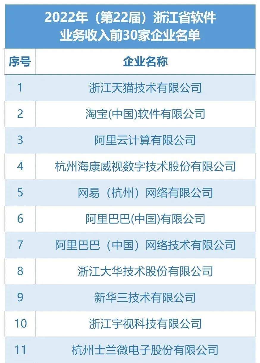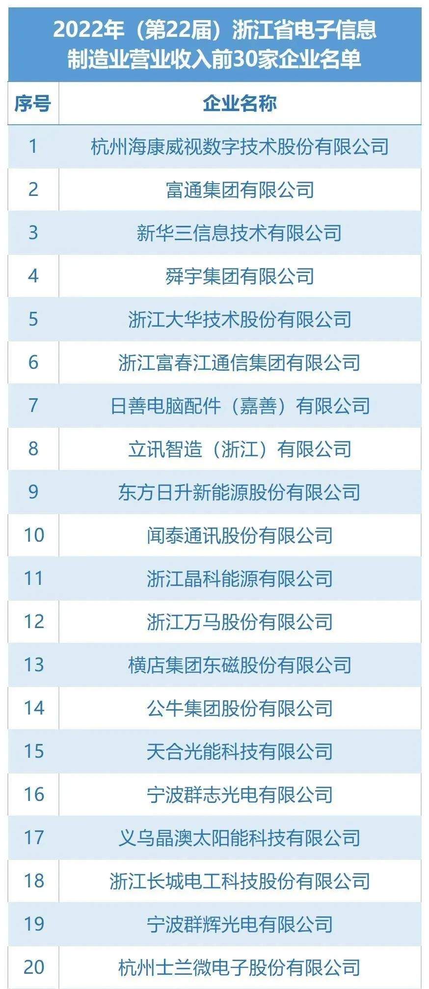 2022年浙江省電子信息產業(yè)百家重點企業(yè)名單