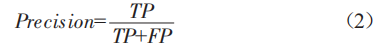 精確率(Precision)表示所有預(yù)測(cè)結(jié)果為正例樣本中真實(shí)為正例的比例,其計(jì)算公式為: