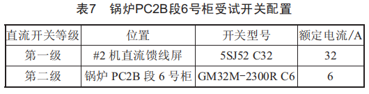 (4)380V鍋爐PC2B段6號柜試驗(yàn),本回路直流開關(guān)配置參數(shù)如表7所示,試驗(yàn)數(shù)據(jù)如表8所示。