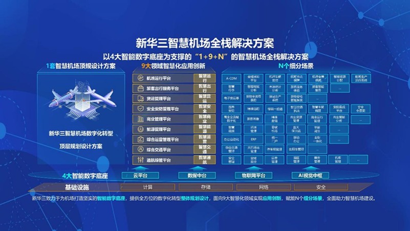 智慧機(jī)場(chǎng)建設(shè)是一項(xiàng)長(zhǎng)期持久的系統(tǒng)工程,需各方力量厘清整體認(rèn)識(shí),緊密圍繞實(shí)際需求,長(zhǎng)期、穩(wěn)步地推進(jìn)各項(xiàng)工作。對(duì)此,趙飛表示,作為數(shù)字化解決方案領(lǐng)導(dǎo)者,新華三始終把智慧機(jī)場(chǎng)作為建設(shè)重點(diǎn),不斷提升技術(shù)應(yīng)用與場(chǎng)景融合的全棧能力?;凇爸腔蹤C(jī)場(chǎng)”的建設(shè)目標(biāo),新華三集團(tuán)提出以4大智能數(shù)字底座為支撐的“1+9+N”智慧機(jī)場(chǎng)全棧解決方案?;诙嗄陮?shí)踐積累,新華三已成功服務(wù)國(guó)內(nèi)近200家機(jī)場(chǎng),包括北京首都國(guó)際機(jī)場(chǎng)、廣州白云國(guó)際機(jī)場(chǎng)、成都天府機(jī)場(chǎng)等國(guó)內(nèi)吞吐量排名前40的全部機(jī)場(chǎng)。