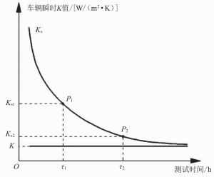 采用升溫法測(cè)試車(chē)輛K值,僅需記錄車(chē)內(nèi)平均溫度的升溫?cái)?shù)據(jù),無(wú)須等待車(chē)輛內(nèi)部和外部環(huán)境達(dá)到熱平衡的穩(wěn)定狀態(tài),即可計(jì)算得到車(chē)輛K值。