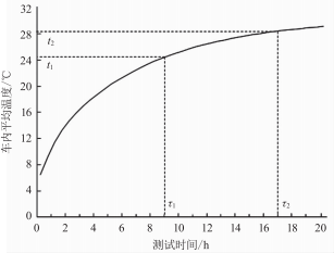 圖1熱穩(wěn)定法車(chē)內(nèi)平均溫度隨時(shí)間的變化曲線