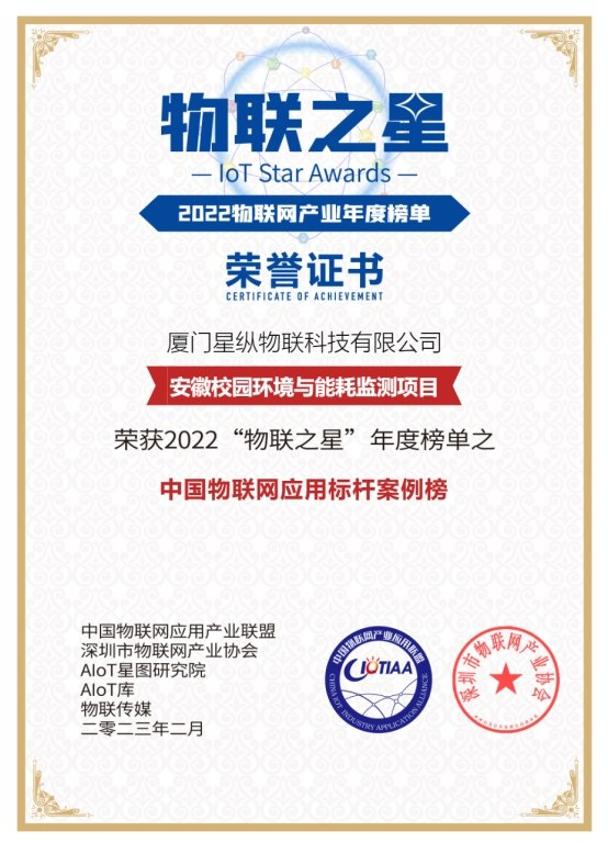 星縱物聯(lián)榮獲2022“物聯(lián)之星”評選三項大獎