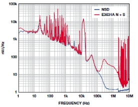 然而,通過展示LDO的PSRR是如何有效濾除源電壓中的噪聲,可以很容易地看到這種信息的利用價值。下圖顯示了LDO在不同裕量電壓下工作時,對總輸出噪聲的影響。