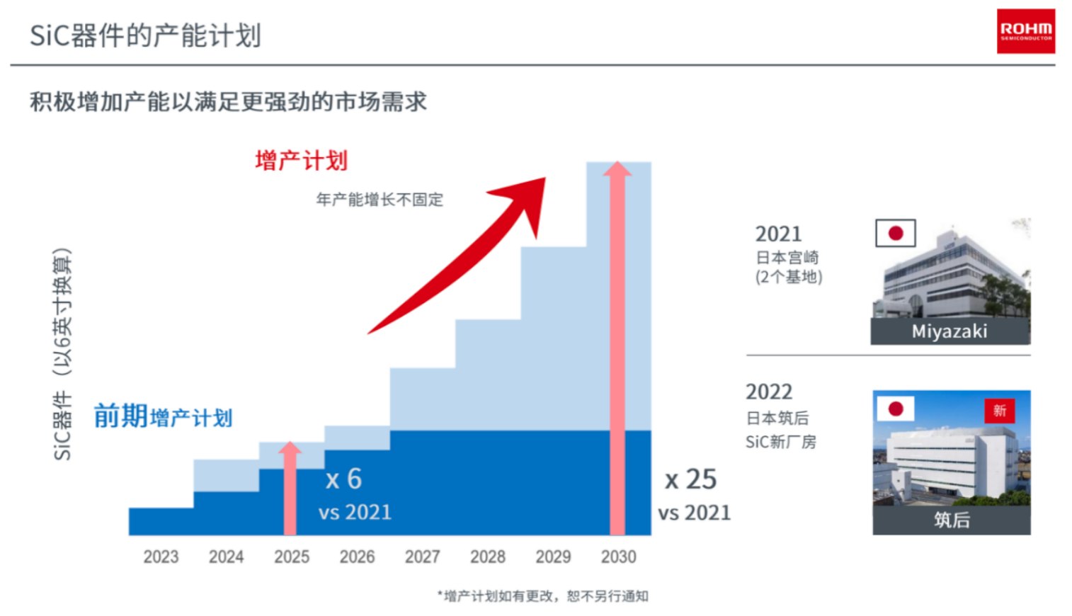 面對未來快速增長的SiC市場,ROHM也會繼續(xù)加大投資,預(yù)計(jì)未來,2021-2025五年內(nèi)會投入約1700-2200億日元。