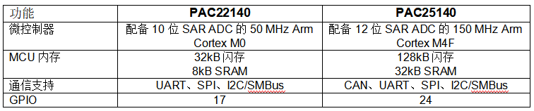 PAC22140 和 PAC25140 可訪問管理當今多單元電池組所需的多個模擬和數(shù)字外設,包括可編程增益差分放大器、用于電流和電壓感測的多個 16 位 Σ-Δ ADC 以及 10 位 SAR ADC。單電源 145V DC/DC 降壓控制器可生成一個為器件供電的 5V 系統(tǒng)供電軌,而集成的電荷泵可以對 FET 驅(qū)動器進行充放電。