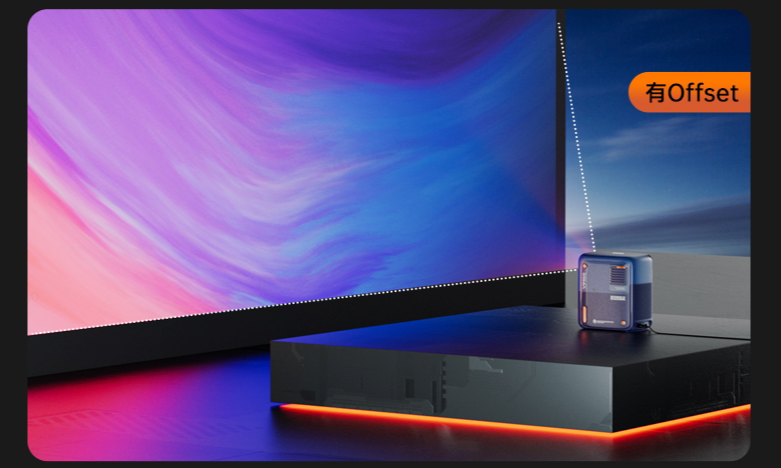 傳統(tǒng)LCD投影儀的配套方案通常是使用支架,使投影儀懸空來制造物理仰角,這樣雖然解決了部分問題,但畫面變形的問題依然存在。同時,使投影儀懸空,就有可能會伴隨掉落的風險,觀影時的注意力就會被分散,觀影體驗并沒有得到多大的改善。