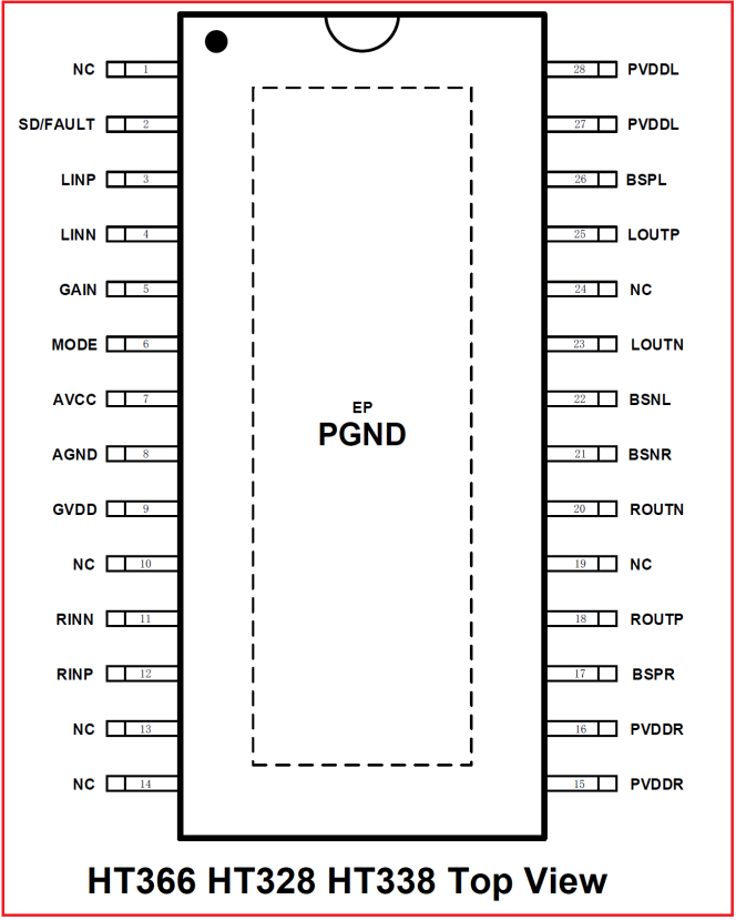 說明一:HT366/HT328/HT338全系列采用TSSOP-28封裝、管腳兼容;