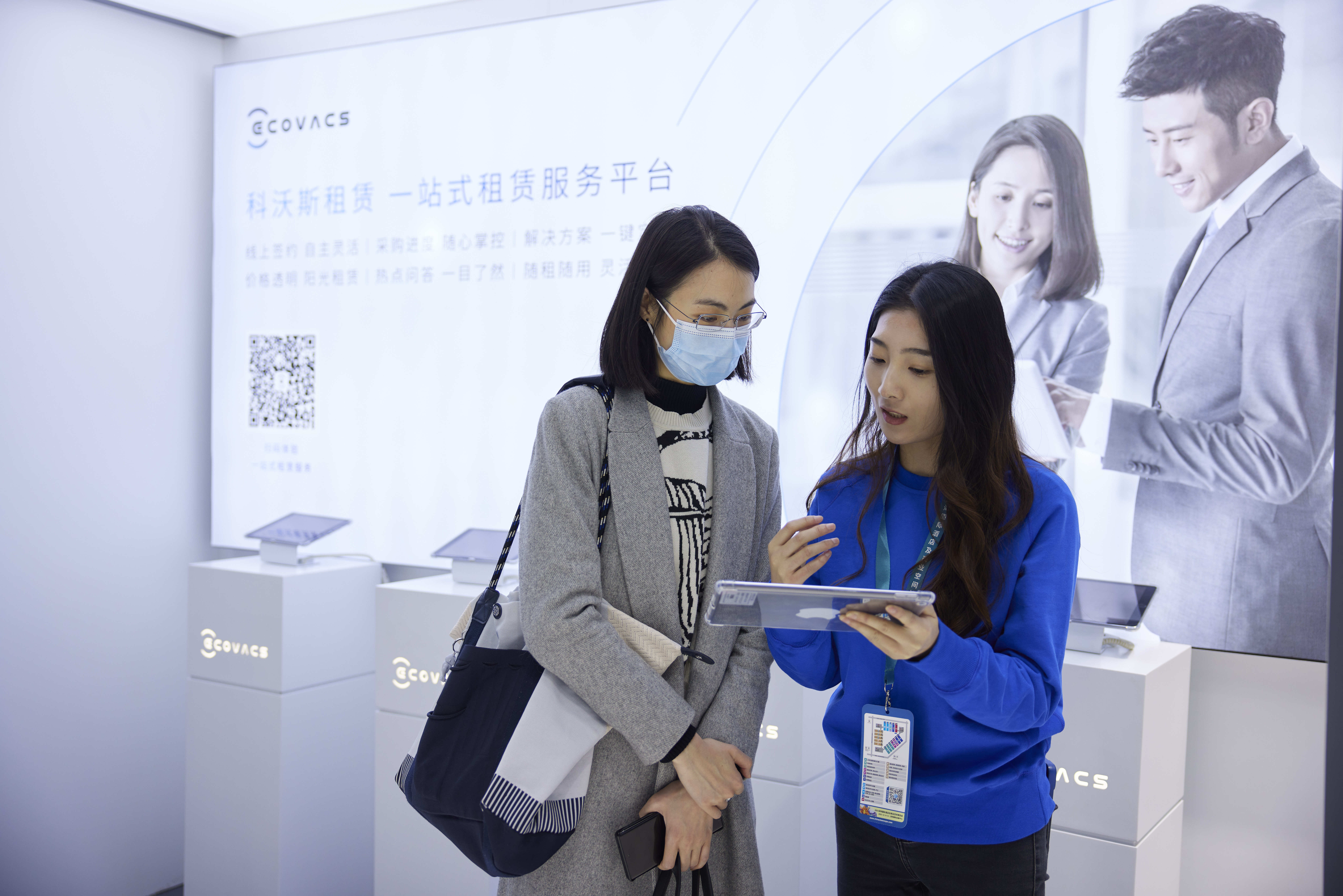 在CCE展臺現(xiàn)場,科沃斯還設(shè)置了一站式租賃平臺體驗區(qū),在場客戶可以體驗從注冊、選品,到下單、簽約的完整流程,一站式解決租賃需求。值得一提的是,注冊成為平臺用戶,線上下單且滿足條件的客戶,可享受贈品洗地機一臺,吸引了眾多客戶體驗洽談。