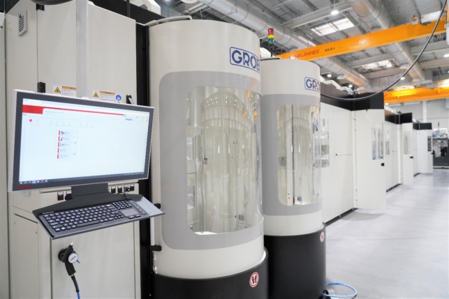 依據(jù)用戶實際產(chǎn)能,該柔性產(chǎn)線目前集成了3臺格勞博G550五軸聯(lián)動通用加工中心,40個托盤存儲位,以及2個上下料操作工位。產(chǎn)線運行時,所有存放在托盤庫的毛坯、物料、在制品都將在格勞博自主研發(fā)的數(shù)字化生產(chǎn)管理軟件GROB4AUTOMATION控制下,被自動傳輸至機床進(jìn)行加工。另外,該軟件還能實現(xiàn)生產(chǎn)訂單的自動排單、排產(chǎn),以及加工狀態(tài)的實時監(jiān)控與調(diào)整,非常契合寶得流體“多品種、小批量”生產(chǎn)模式的需求。在產(chǎn)線建成后,寶得流體將實現(xiàn)24小時無人值守、數(shù)十種產(chǎn)品同時生產(chǎn)的高度柔性自動化。