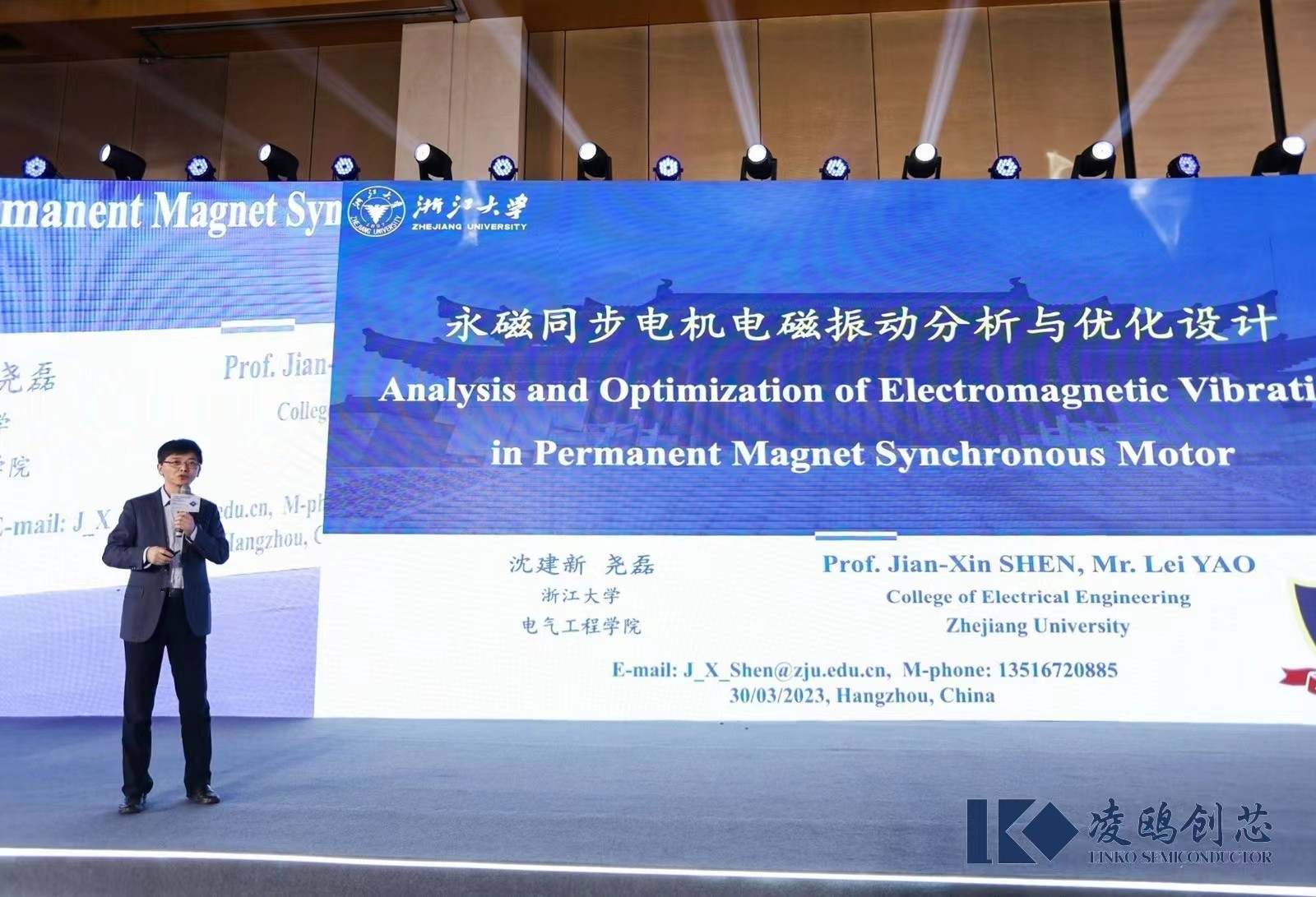 下午15:35分,在茶歇以及現(xiàn)場抽獎結(jié)束后,浙江大學(xué)電氣工程學(xué)院教授沈建新上臺演講《永磁同步電機電磁振動分析與優(yōu)化設(shè)計》,他主持過國家重點研發(fā)計劃1項、國家自然科學(xué)基金重點項目2項、面上項目4項,參與國家自然科學(xué)基金重大項目1項、973項目2項、863項目1項;曾為神舟7號航天員艙外航天服等國家重大工程研發(fā)電機產(chǎn)品,在演講中,沈教授分享了有關(guān)電磁振動的原理、電磁振動分析與優(yōu)化設(shè)計等等。