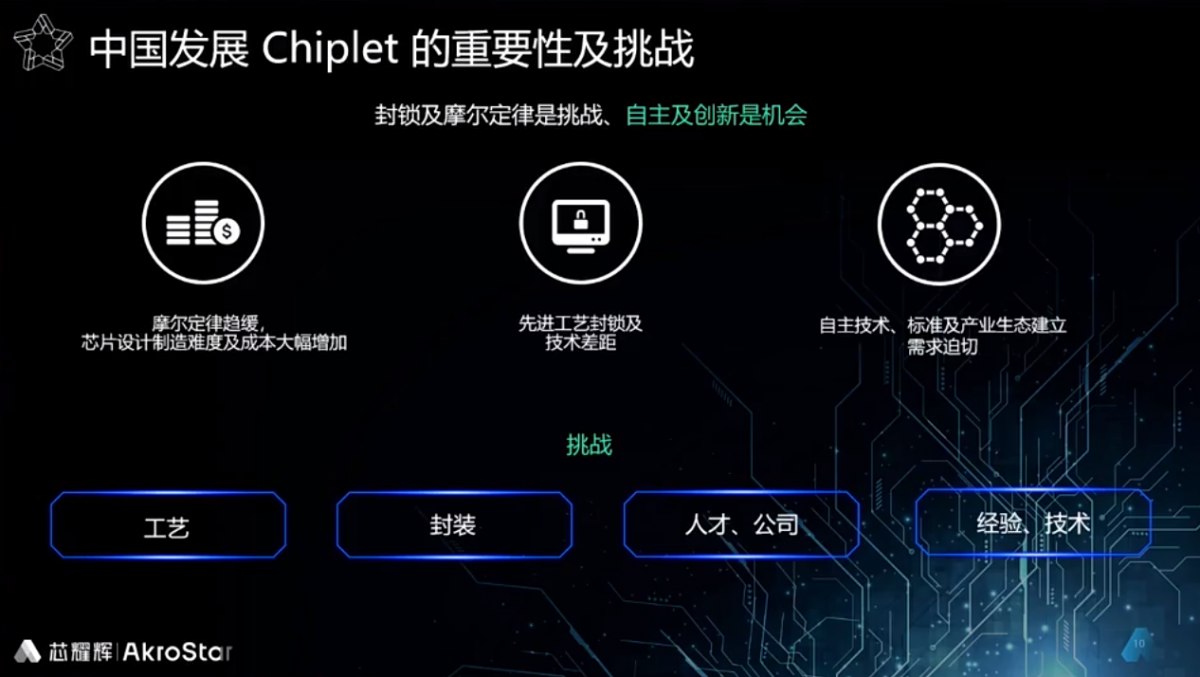在中國發(fā)展Chiplet面臨哪些挑戰(zhàn)?從技術(shù)上面看來,中國現(xiàn)在產(chǎn)業(yè)鏈發(fā)展最大的挑戰(zhàn)是技術(shù)封鎖,由封鎖所帶來的自主需求也是一大機遇。在單位硅片面積上增加晶體管數(shù)量有困難,轉(zhuǎn)而追求在單個封裝內(nèi)部持續(xù)提升晶體管數(shù),這也是目前發(fā)展Chiplet技術(shù)對國內(nèi)芯片產(chǎn)業(yè)的最大意義。