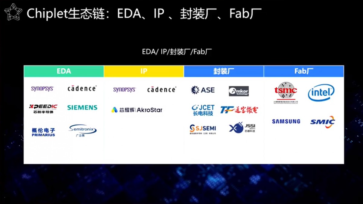 主要有四個重要角色參與Chiplet生態(tài)鏈:EDA供應(yīng)商,IP廠商,封裝廠,F(xiàn)ab廠。尤其對于IP供應(yīng)商而言,基于IP復(fù)用的模式,設(shè)計能力較強的IP供應(yīng)商有潛力演變?yōu)镃hiplet供應(yīng)商。而IP供應(yīng)商也需要具備高端芯片的設(shè)計能力,以及多品類的IP布局和平臺化的運作能力,以上都對IP供應(yīng)商提出了更高的要求。又由于Chiplet加入了更多的異構(gòu)芯片和各類總線,相應(yīng)的EDA覆蓋工作就變得更加復(fù)雜,需要更多的創(chuàng)新功能。國內(nèi)EDA企業(yè)需要提升相關(guān)技術(shù),應(yīng)對堆疊設(shè)計帶來的諸多挑戰(zhàn),例如對熱應(yīng)力、布線、散熱、電池干擾等的精確仿真,在封裝方面需要2.5D和3D先進封裝技術(shù)支持,同時Fab方面也需要相關(guān)技術(shù)的支持。