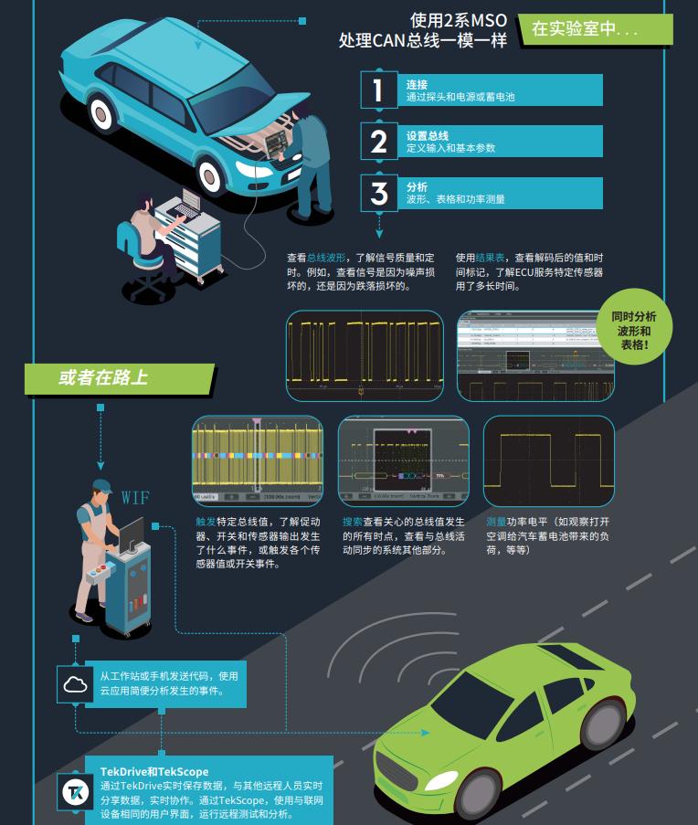 下面的信息圖顯示了汽車工程師如何使用2系列MSO在現(xiàn)場解鎖新的見解和解碼汽車信號。