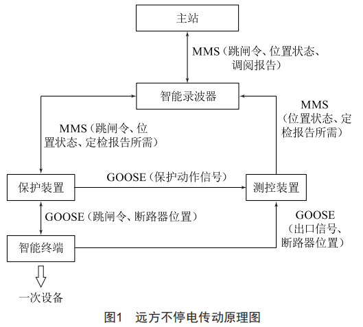 主站下發(fā)了傳動命令后,智能錄波器將命令傳遞給保護裝置,保護裝置對智能終端發(fā)出跳閘命令,并短時發(fā)出重合命令,保護的跳合閘命令和智能終端的跳合閘返校信息均為GooSE。遠方不停電傳動過程中,保護還會上送有關(guān)的MMS信號,有些GooSE信號也會經(jīng)測控訂閱后MMS轉(zhuǎn)發(fā)。