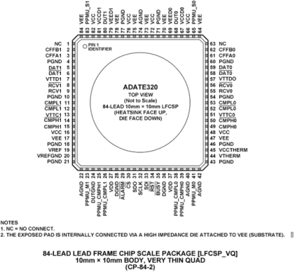 ADATE320(PE)是一款完整的單芯片ATE解決方案,用于執(zhí)行驅(qū)動(dòng)器、比較器和有源負(fù)載(DCL)、四象限單引腳參數(shù)測(cè)量單元(PPMU)的引腳電子功能。提供三種有源模式:高、低和端接模式以及高阻抗抑制狀態(tài)。