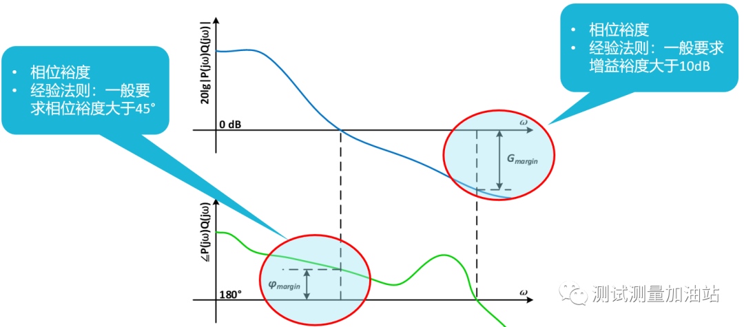 (1)相位裕度:增益降到0dB時(shí),此時(shí)離-180°的距離即為相位裕度,即增益Gain=0dB時(shí),相位裕度=φ-(-180°)。