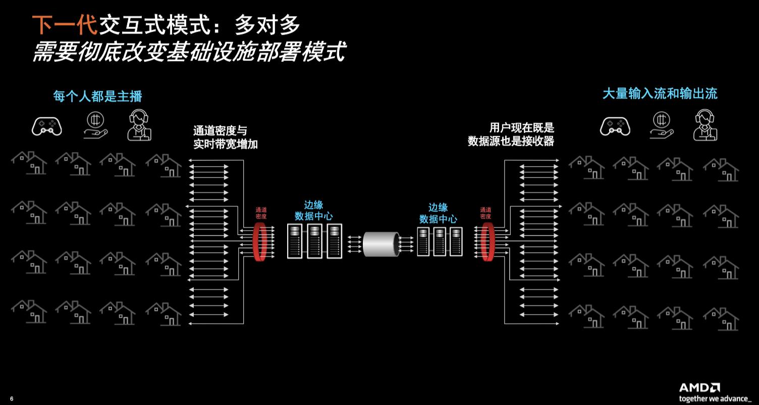 視頻流媒體市場總額將從2021年的61個(gè)Billion一路增長,至2028年達(dá)到213個(gè)Billion。流媒體大漲的背后技術(shù)挑戰(zhàn)來自新一代的交互模型,會是“多對多”的形式。這種交互模型的變化,將會徹底改變基礎(chǔ)設(shè)施的部署模式。