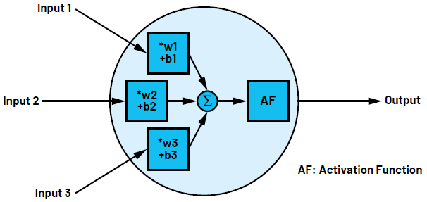 圖1.擁有三個(gè)輸入和一個(gè)輸出的神經(jīng)元
